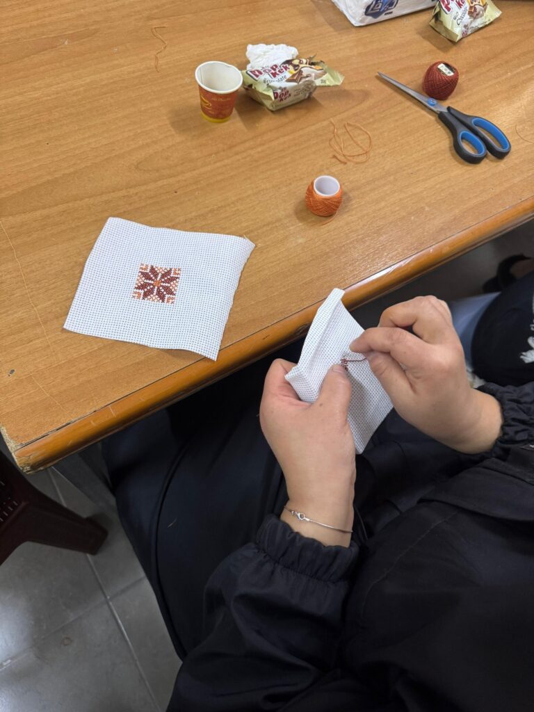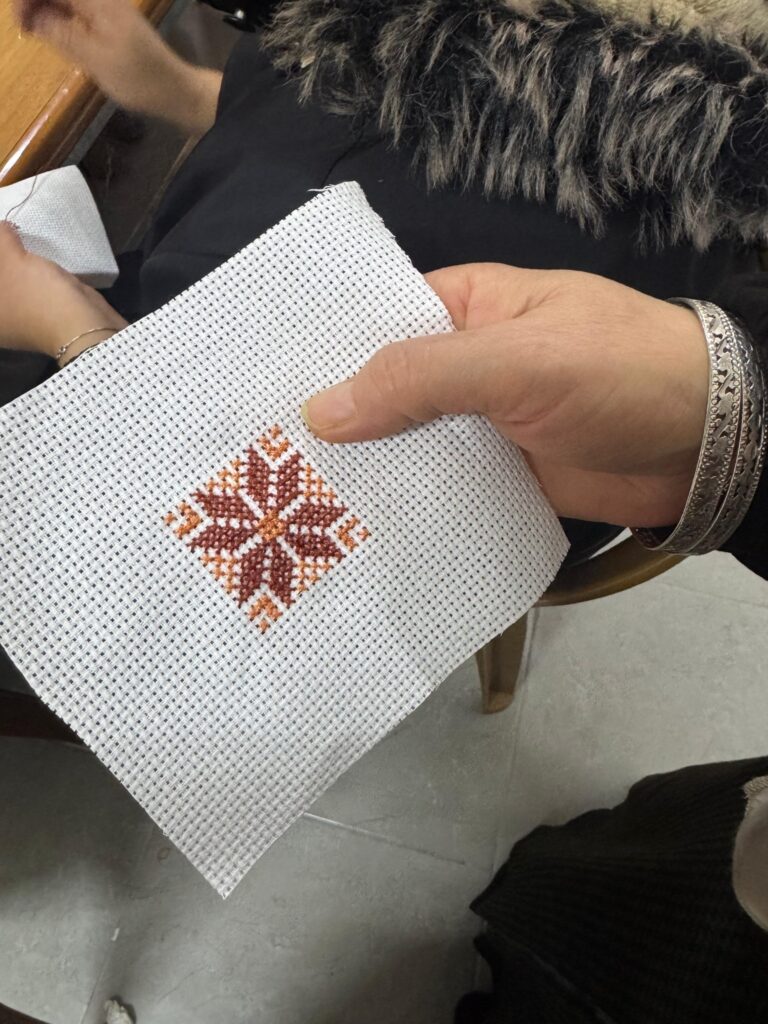 The first session witnessed notable attendance and strong engagement from the participants. It began with a welcoming speech by the trainer, followed by a comprehensive introductory presentation on the course’s goals and main topics. A theoretical overview of the basic embroidery tools—such as hoops, needles, and threads—was presented, in addition to an explanation of the fabrics suitable for this craft. The session also included an introductory explanation of the main basic stitches that will be applied practically in upcoming meetings.