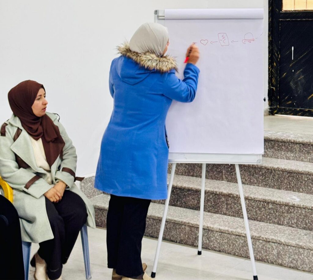 L’atelier comprenait un ensemble de méthodes pratiques de soutien psychologique, mettant l’accent sur la gestion de la peur et du stress chez les enfants, ainsi que sur les moyens de renforcer leur sentiment de sécurité et de contenir leurs émotions dans des الظروف difficiles.
